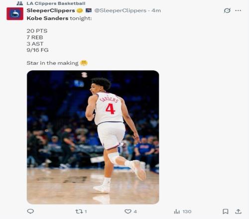 次輪50號秀生涯之夜!轟20+7彌補哈登空缺拿63萬成快船超級奇兵